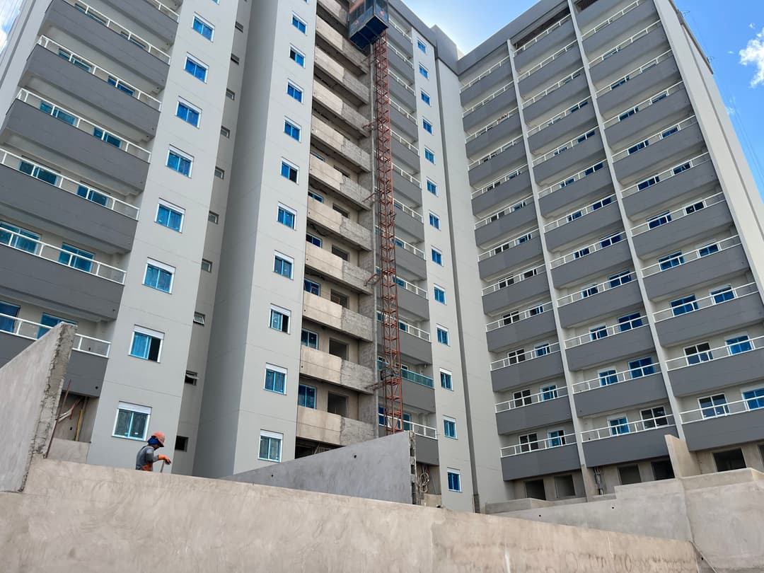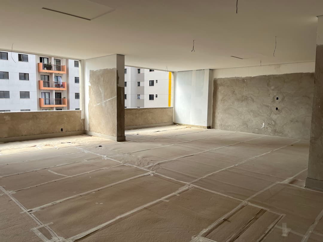 1 vaga de garagem, sala de estar, jantar e cozinha integrados, banheiro social, área técnica, varanda, 1 dormitório.